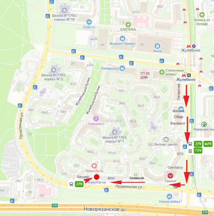 Студия АэроМагия находится в 10 минутах пешком от метро Жулебино, в 13 минутах пешком от метро Котельники, а если вы на машине, то рядом со студией много парковочных мест прямо вдоль дороги. Парковка платная.