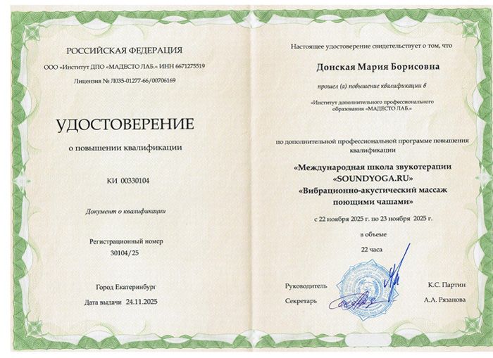 3) звукотерапевт (Международная школа поющих чаш SOUND YOGA)