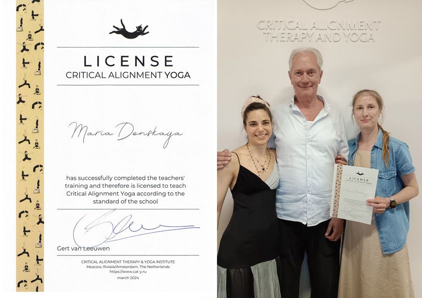 Прошла обучение по йоге критического выравнивания лично у автора метода Херта ван Льюэна. Он ежегодно прилетает в Россию из Нидерландов с целью обучения новых преподавателей и повышения квалификации текущих.