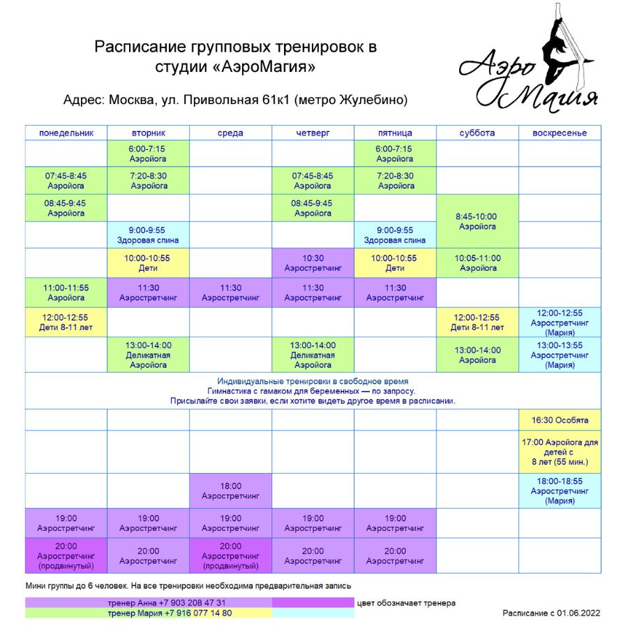 C 1 июня 2022 вступает в силу новое расписание групповых тренировок в студии АэроМагия.